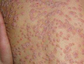2、脓疱型牛皮癣症状:分为泛发性,限局性两型。皮损处出现密集的浅在性针头至粟粒大小的无菌性小水疱,脓疱反复发生,破溃后逐渐干燥结痂,反复发作。