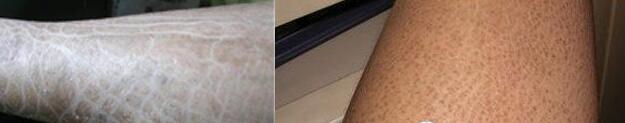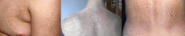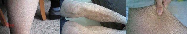 鱼鳞病是一种遗传性角化障碍性皮肤病,其共同特点为四肢伸侧或躯干部发生很多干燥、粗糙状如鱼鳞的、角化性鳞屑、有深重斑纹、好起白皮。下面是鱼鳞病的图谱,如果你怀疑自己得了鱼鳞病,可以对照下面谱图;如果你还是不能确定,可以咨询鱼鳞病在线医生,帮你诊断病情。